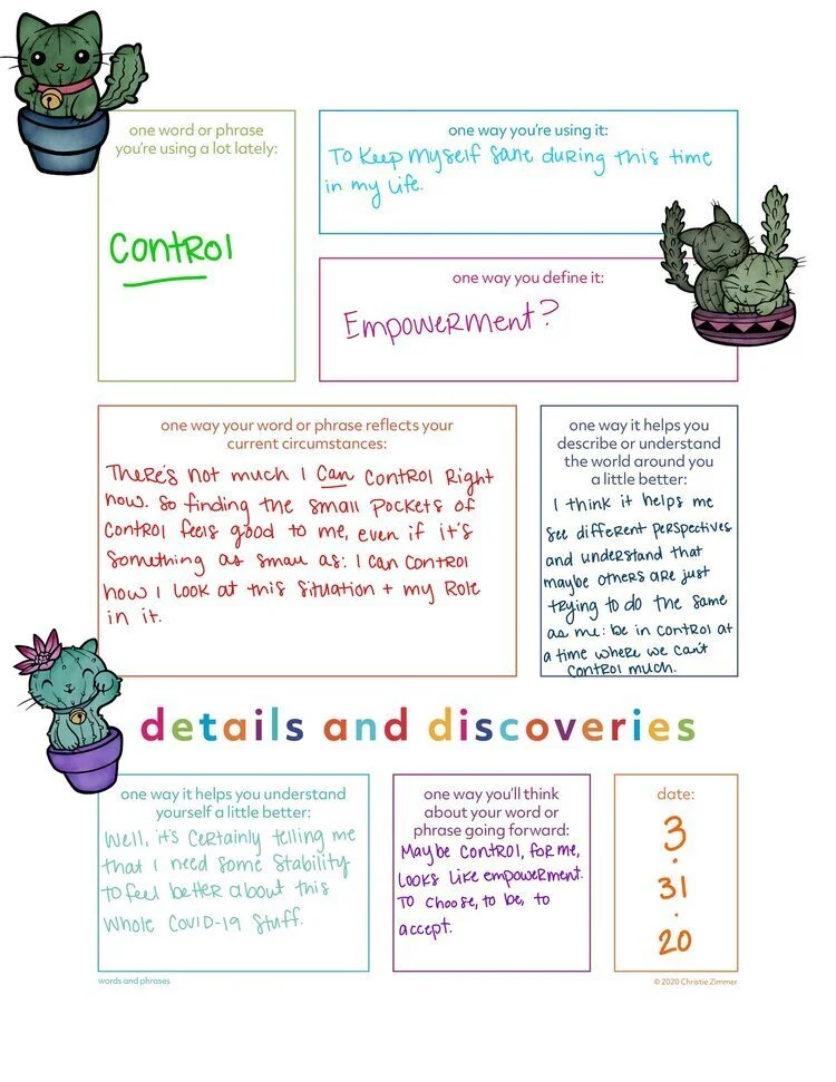 All three of us had chosen words that felt pretty somber… but it was reflective of what we as individuals and a collective whole have been going through during this time in our lives. The more we shared what we’d written and how we were using the process to work through our thoughts, the more it became a form of catharsis (at least for me).
